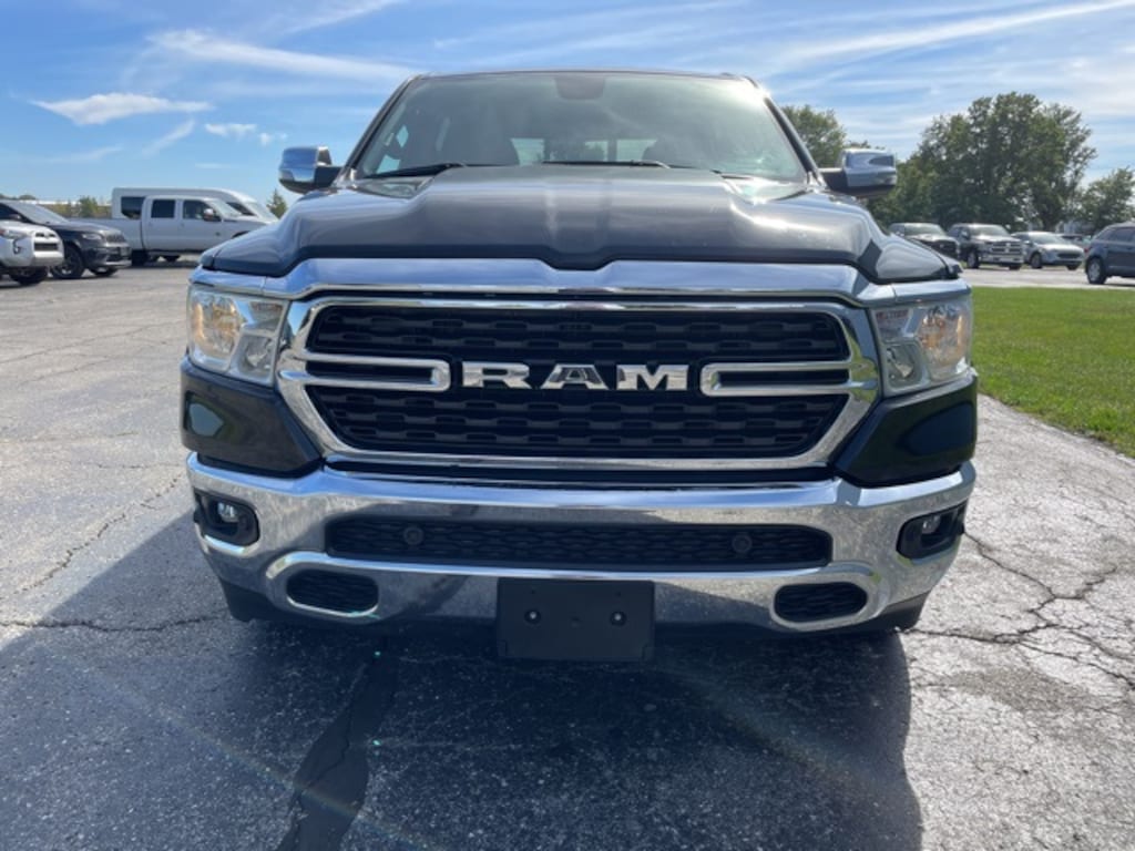 uCONNECT, ALPINE PREMIUM AUDIO WITH SUBWOOFER, REMOTE START, HEATED FRONT SEATS, HEATED STEERING WHEEL, POWER DRIVER SEAT, REAR CAMERA, FRONT AND REAR PARK ASSIST, ANTI-SPIN DIFFERENTIAL REAR AXLE, FACTORY TOW PACKAGE, HEMI 5.7L V8 Multi Displacement VVT eTorque, 8-Speed Automatic, 4WD, 115V Auxiliary Power Outlet, 2nd Row In Floor Storage Bins, 400W Inverter, 8.4" Touchscreen Display, 9 Amplified Speakers w/Subwoofer, Air Conditioning ATC w/Dual Zone Control, Anti-Spin Differential Rear Axle, Apple CarPlay, Auto-Dimming Rear-View Mirror, Big Horn Level 2 Equipment Group (DISC), Bluetooth Handsfree Phone & Audio, Bucket Seats, Class IV Receiver Hitch, Convex Wide-Angle Exterior Mirror Insert, Electric Shift-On-Demand Transfer Case, Emergency communication system: SiriusXM Guardian, Exterior Mirrors w/Heating Element, Front Fog Lamps, Fully automatic headlights, Google Android Auto, Heated Front Seats, Heated Steering Wheel, Media Hub w/2 Charge Only USBs, Outside temperature display, ParkSense Front/Rear Park Assist w/Stop, ParkView Rear Back-Up Camera, Power 8-Way Driver Seat, Power Adjustable Pedals, Power-Folding Mirrors, Radio: Uconnect 5 W w/8.4" Display, Rear Power Sliding Window, Rear Window Defroster, Remote Start System, SiriusXM Satellite Radio, Split folding rear seat, Steering wheel mounted audio controls, Telescoping steering wheel, Traction control, USB Host Flip, Wheel to Wheel Side Steps, Wheels: 18" x 8" Cast-Aluminum Painted. Clean CARFAX. Big Horn/Lone Star 4D Crew Cab 8-Speed Automatic 4WD HEMI 5.7L V8 Multi Displacement VVT eTorque